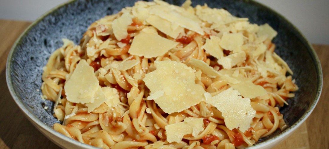 Ingredients 2 tbsp olive oil 1 onion, diced 5 garlic cloves, minced 3 small red chillies, finely chopped 1 tbsp tomato paste 800g canned diced tomatoes 2 tsp raw caster sugar salt and pepper, to taste 500g mixed dried pasta, cooked ½ cup grated parmesan cheese, plus extra to serve