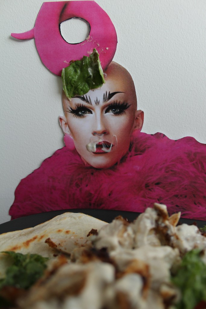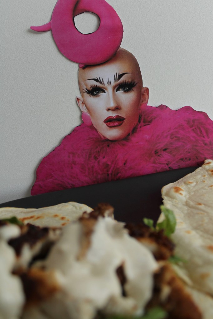 Backstage, sweet Vespi was in her feels, heartbroken to be out of the competition so soon. Particularly since a lot of it came down to things going wrong for her, rather than the concepts. I pulled her in for a massive hug and assured her that she still got to show off her talent and given the hijinks, it kind of made her more iconic and as such, she should be able to benefit from it. Kinda like the French version of Farrah Moan. With that, she was pretty chuffed – I mean, hello All Stars – and gladly sat down to celebrate her brief run with some Vespeach and Haloumi Pitas.
