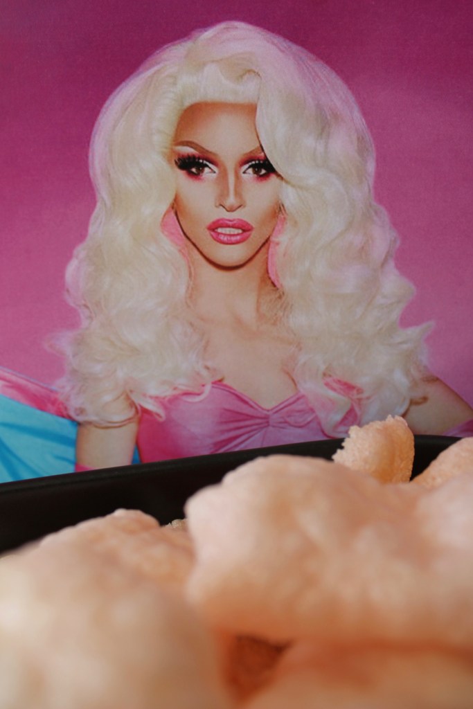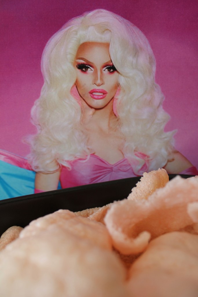 Poor Cracker only seemed to be able to get out of her head for one glorious moment this season, so I focused on lifting my dear friend up and reminded her that she is beautiful, she looks like a model. Did she stone those … sorry, Valentina tangent. Anyway – I’ve known Crack for years and while she admittedly is thin white a salty, I decided she needed something more to cheer her up. Like a Miz Prawn Cracker.
